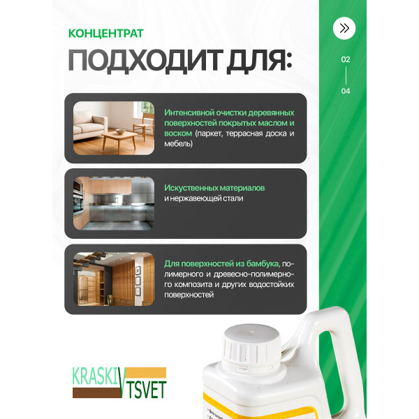 Высокоэффективное средство для генеральной уборки OSMO – уникальное решение для тех, кто ценит качество и безопасность. Этот продукт создан специально для того, чтобы помочь вам быстро и легко справиться с любыми загрязнениями на поверхностях вашего дома. надежное средство для очистки деревянных поверхностей, которое сочетает в себе высокую эффективность и бережное отношение к материалу. Этот бесцветный очиститель создан специально для глубокой очистки древесины от загрязнений и пятен, сохраняя её природную текстуру и цвет.
