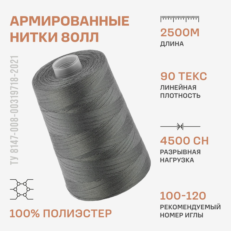 Армированные нитки являются универсальными и обеспечивают высокую прочность соединения деталей, хороший внешний вид строчки. Их используют для стачивания деталей, обметывания срезов и выполнения отделочных швов.