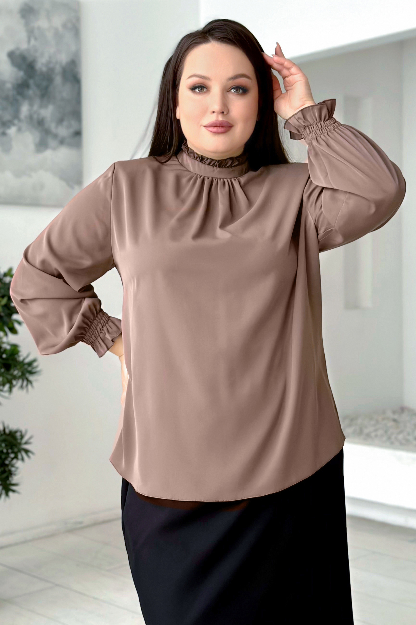 Блузка искусственный шелк “рукав фонарик” со складками на груди шоколад