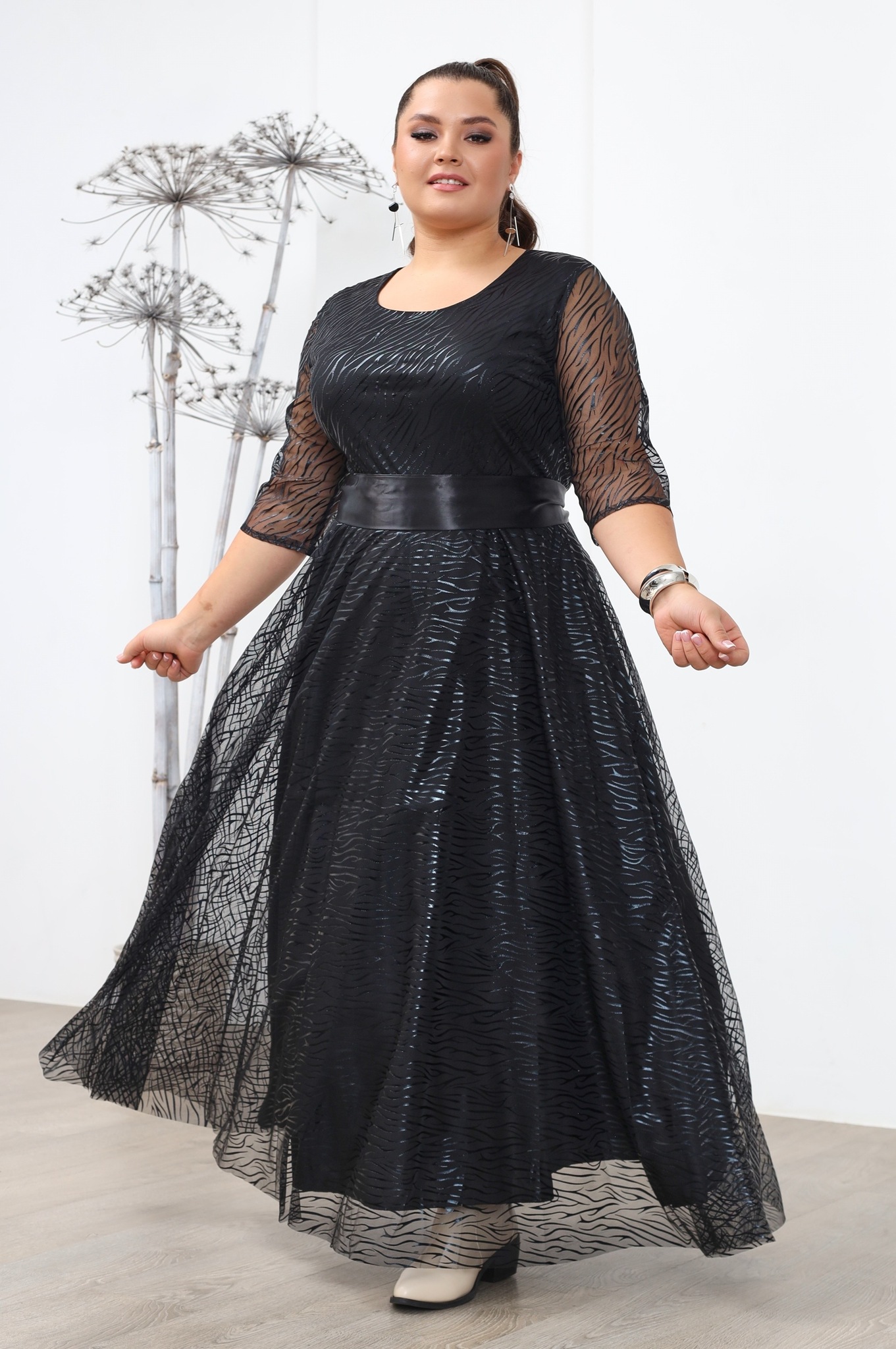 Платье длинное круглый вырез “лаковые волны” двойное черное