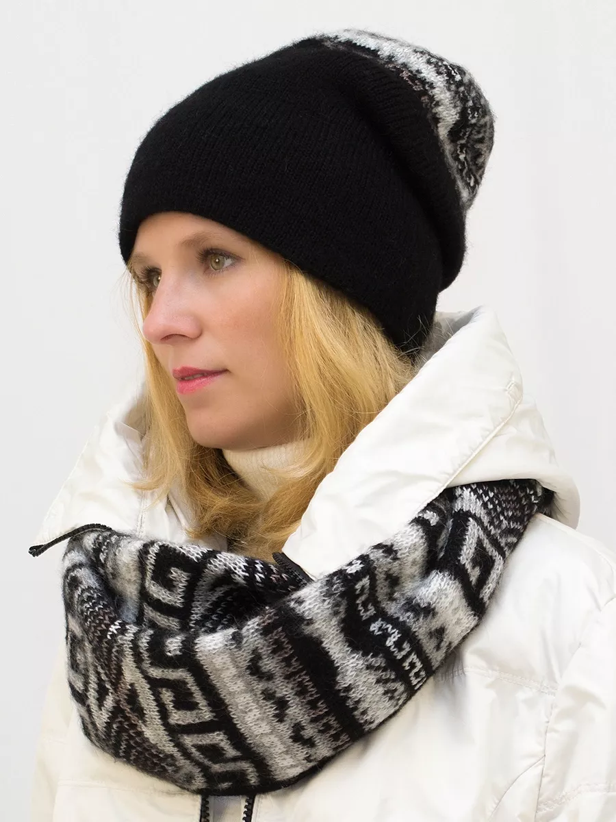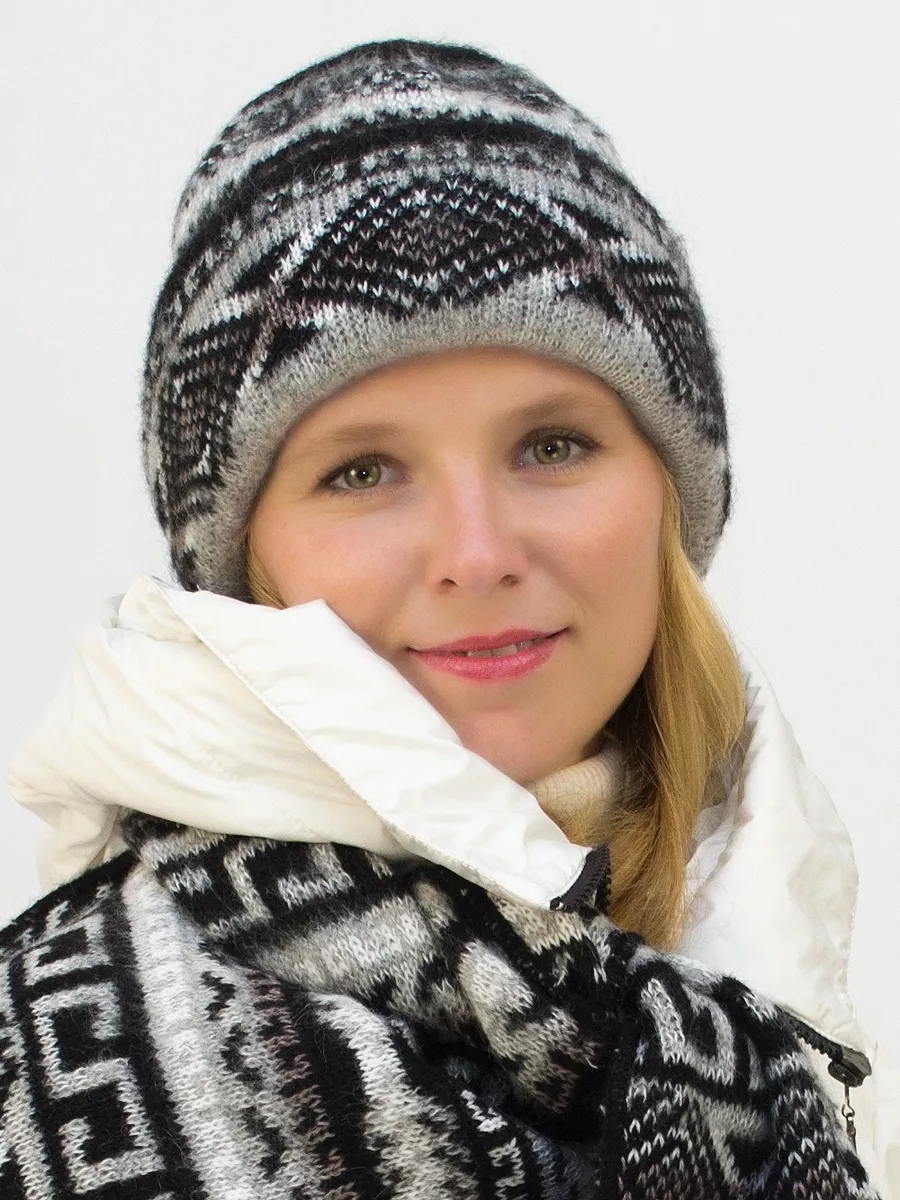 Шикарный комплект для нашей сибирской зимы. Изделие связано из итальянского мохера с добавлением шерсти и акрила жаккардовым переплетением. Прекрасное цветовое решение. Очень теплая объемная шапка классической формы с широким отворотом подойдет к любом…