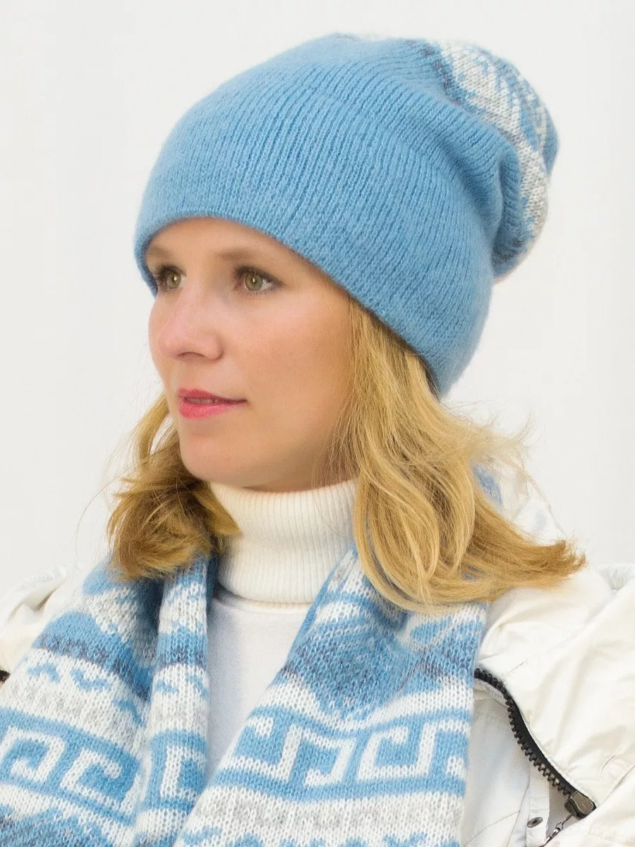 Шикарный комплект для нашей сибирской зимы. Изделие связано из итальянского мохера с добавлением шерсти и акрила жаккардовым переплетением. Прекрасное цветовое решение. Очень теплая объемная шапка классической формы с широким отворотом подойдет к любом…