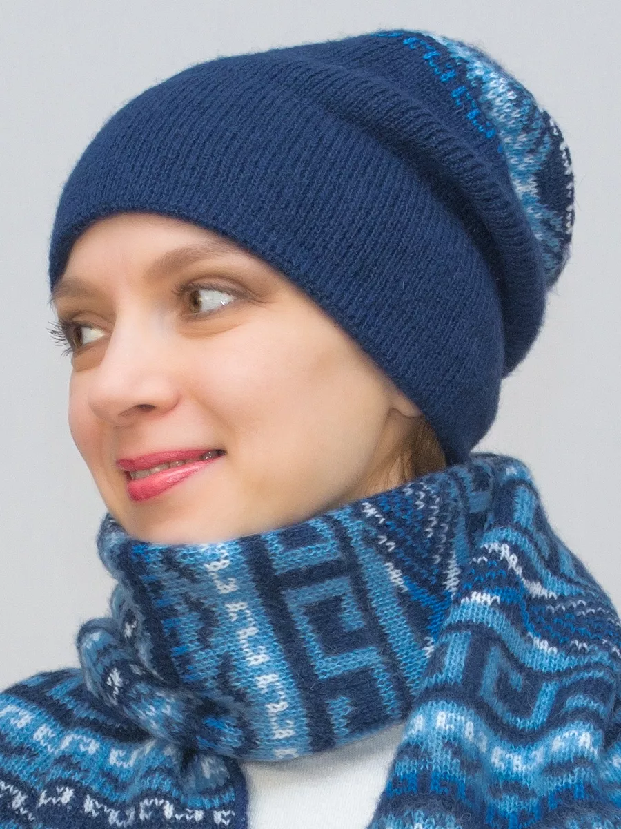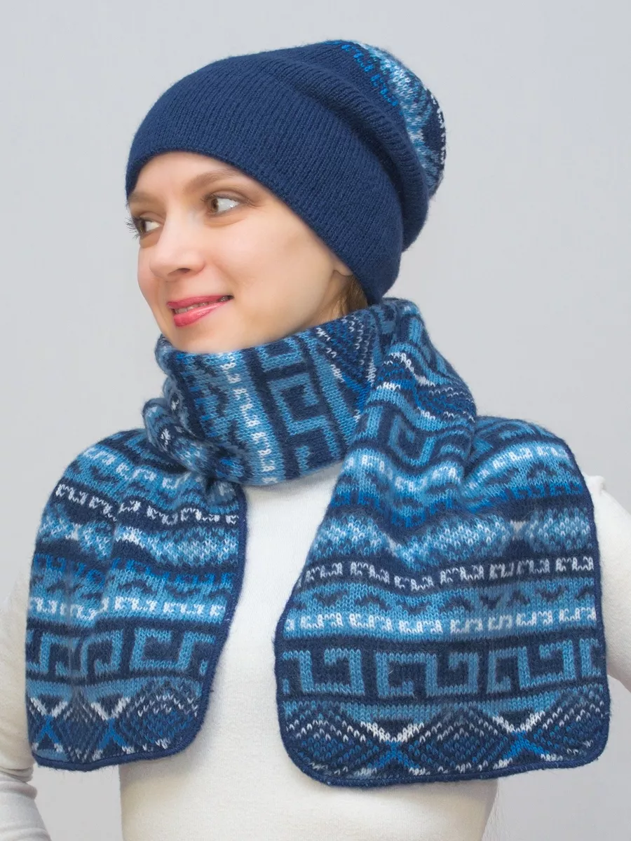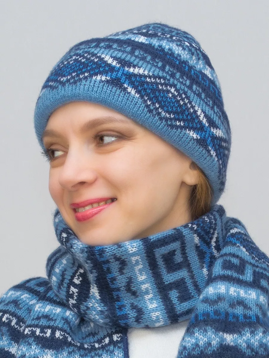 Шикарный комплект для нашей сибирской зимы. Изделие связано из итальянского мохера с добавлением шерсти и акрила жаккардовым переплетением. Прекрасное цветовое решение. Очень теплая объемная шапка классической формы с широким отворотом подойдет к любом…