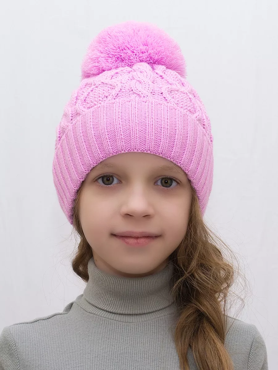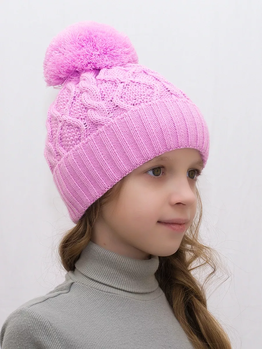 Шапка для девочки с широким отворотом из акрила. Выполнена крупной вязкой “косы” . Украшает шапку большой помпон. Благодаря хорошей эластичности, модель максимально комфортна для любого размера головы. К шапочке можно подобрать снуд из нашей коллекции,…