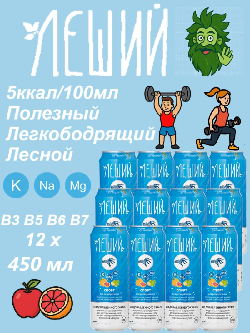 «Леший» — российский напиток, который соединяет фольклорный образ и современные потребительские тренды. Идея бренда — предложить более здоровую альтернативу энергетикам и облегчённый спортивный напиток/лимонад без сахара. Формула даёт мягкий заряд бодрости: в банке всего около 7,5 мг кофеина, поэтому напиток освежает, но не мешает сну. В составе — электролиты калия, магния и натрия, витамины и натуральные лесные экстракты.