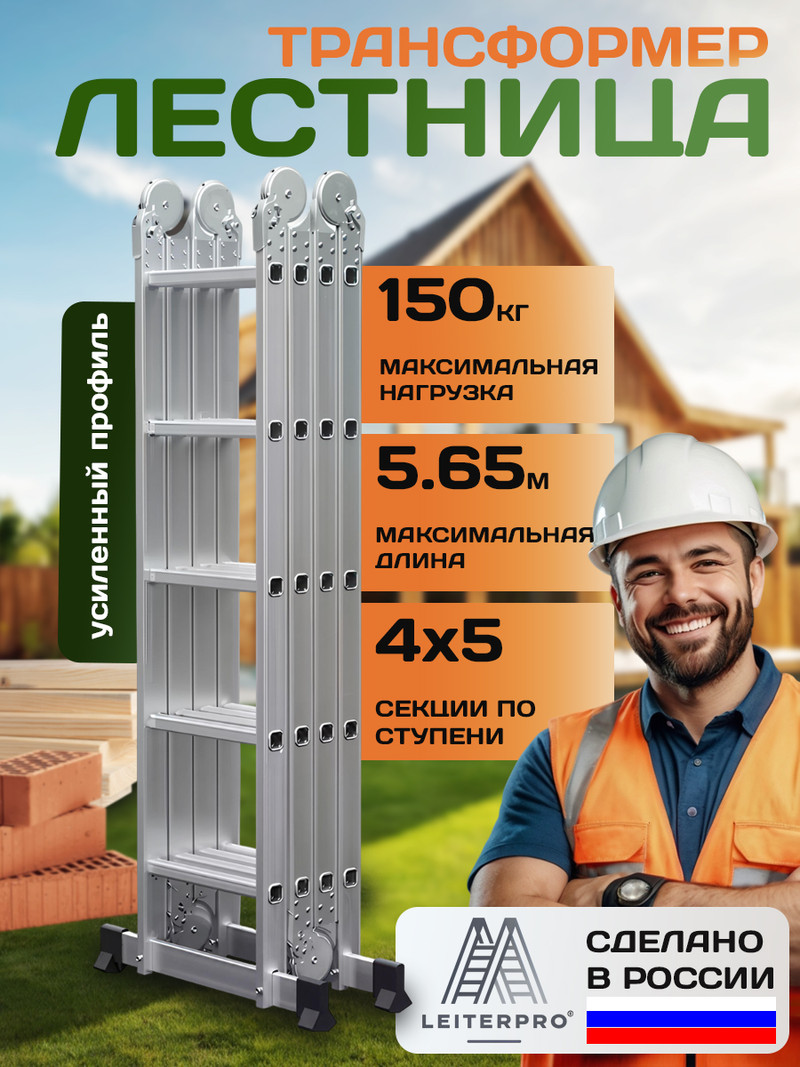 Чтобы купить Лестница-трансформер стремянка 4х5 LEITERPRO, высота 5,65 м. оптом по цене 8500 руб., свяжитесь с поставщиком. Компания поставщик — LeiterPro (ООО «ЛЕСНО») из города Чебоксары (Чувашия). Доставка возможна автомобилем, транспортной компанией. Способы оплаты: безналичная оплата, наличными.