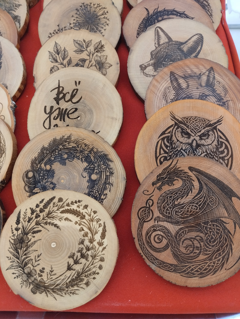 Размер: 8-20 см, Гравировка: Рисунок под заказ, Отделка джутом: Под заказ, Отделка шнуром: Под заказ