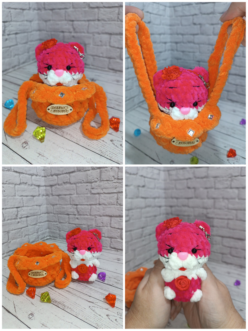 Красная кошечка-это мягкая игрушка, изготовлена из высококачественного мягкого и долговечного плюша, связана из детской пряжи YarnArt DOLCE, наполнитель холофайбер, который делает игрушку комфортной и безопасной для игры.