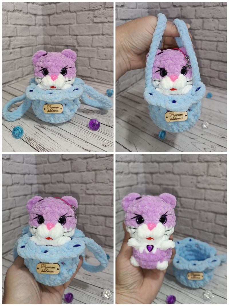 Прекрасный выбор подарка! Сиреневая кошечка в голубой корзиночке-станет любимой подружкой для Ваших деток и родных, принесет в Ваш дом радость и уют!