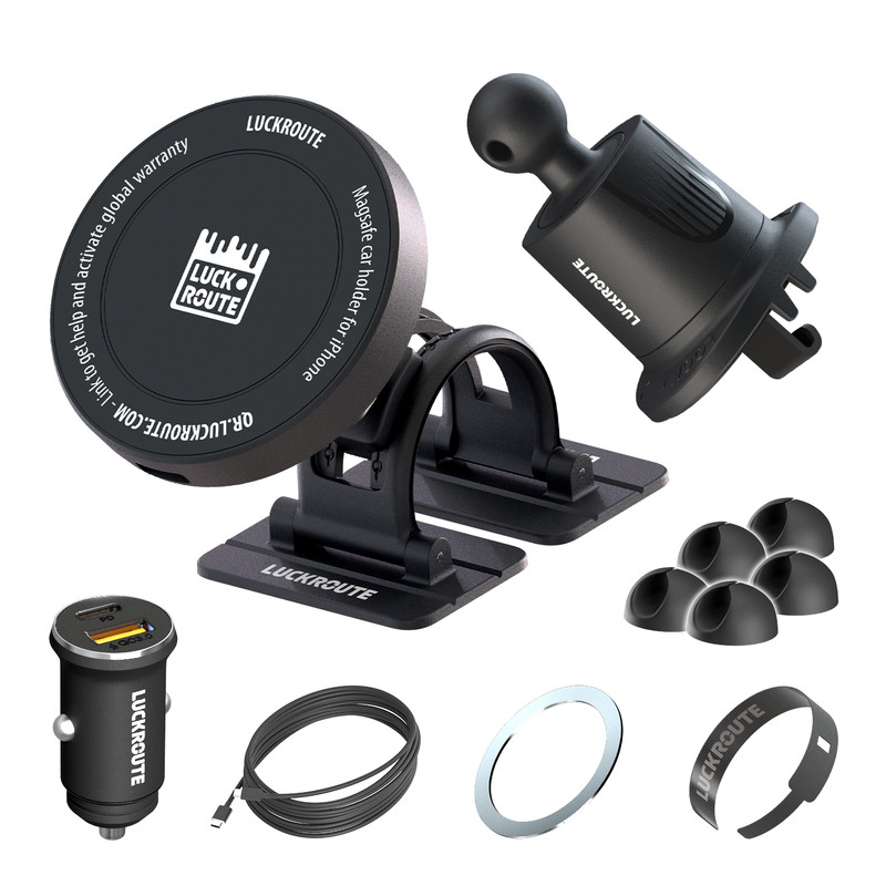 Магнитный автомобильный держатель для Айфона с функцией быстрой беспроводной зарядки MagSafe от Luckroute — незаменимый аксессуар для каждого автомобилиста и лучший подарок с заботой о безопасности вождения, а расширенная комплектация сделает его использование еще более комфортным и вариативным.