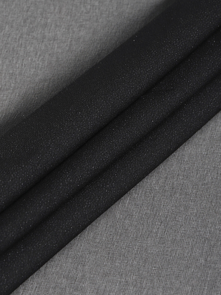 Дублерин эластичный - прокладочный материал с клеевым слоем по одной стороне. Эластичный дублерин тянется, легко драпируется, долго сохраняет свою форму. Сцепление с основным материалом происходит за счет клея при температуре 130-150? в течение 13-16 сек, давление 1,5-2,5 кг/см. Плотность дублерина 18 г кв.м, клей нанесен точечно, вес клея 7 г кв.м. Состав 100% полиэстер. Перед применением рекомендуется провести декатировку: на 1-2 часа подержать в воде, затем высушить не отжимая. Используется для уплотнения швов, краев и плотности основного материала.