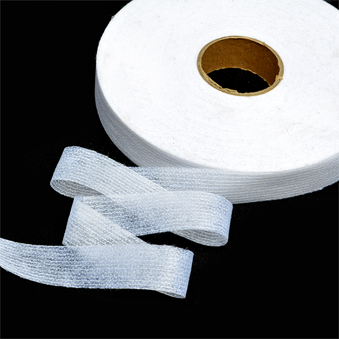 Лента клеевая нитепрошивная по долевой - прокладочный материал с клеевым слоем по одной стороне, скроена по долевой - благодаря чему лента не тянется. Сцепление с основным материалом происходит за счет клея при температуре 130-150? в течение 12-15 сек, давление 1,5-2,5 кг/см. Лента ипользуется для укрепления проймы, горловины, предохраняет швы от растяжения.