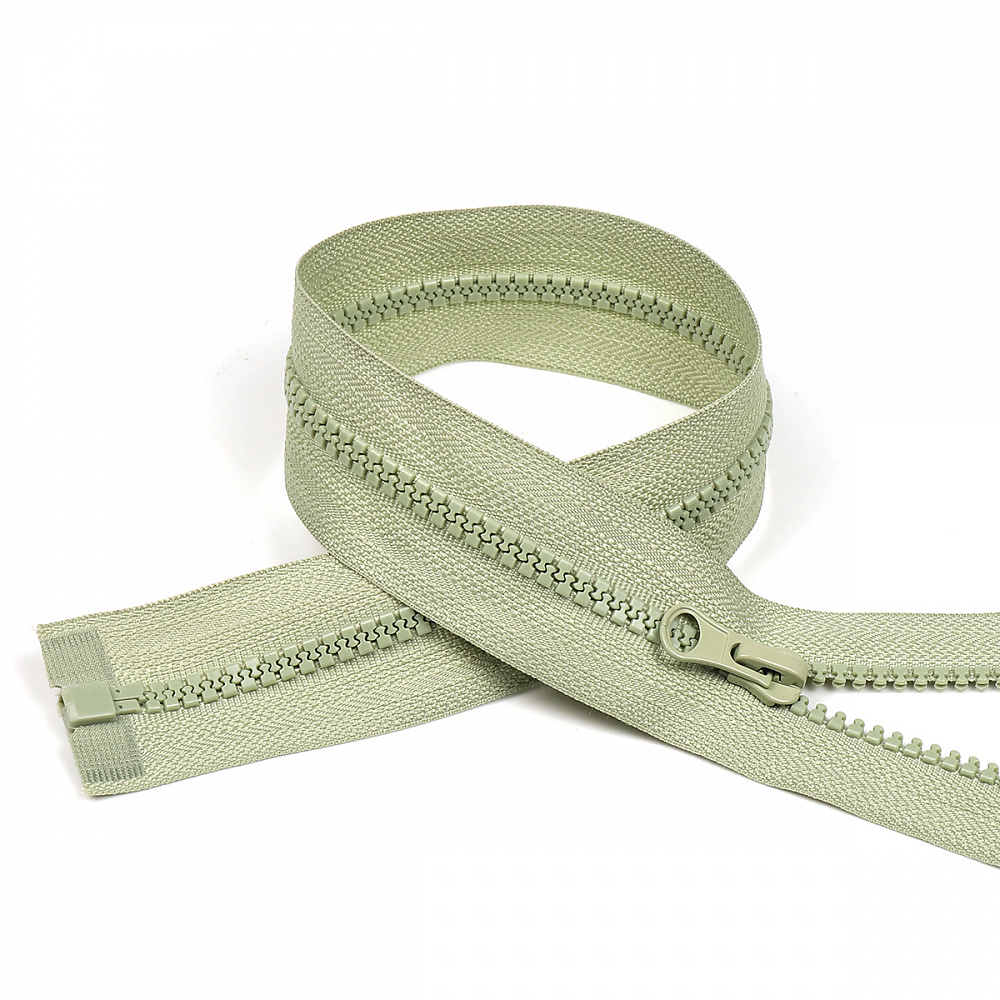 Тракторная молния состоит из пластиковых зубьев, закрепленных на тесьме отдельно. Зубья чаще всего имеют закругленную форму. Молния трактор Mzip имеет прочную и широкую тесьму (около 3,3 см). Твердые зубья на молнии изготовлены из качественного пластика первого сорта POM (качества Delrin). Это термопластический материал, разработанный на основе полиоксиметилена (он так же известен как ацеталь, полиацеталь – наиболее жесткий из всех полимеров). Данный материал обеспечивает звеньям молнии долговечность, плавное скольжение. Обладает высокой химической и термической стойкостью, устойчив к механическим повреждениям. Низ молнии около разъема имеет усиленную таффетную заделку. Данная молния надежна и износоустойчива, легко переносит перепады температур - не теряет своих свойств.