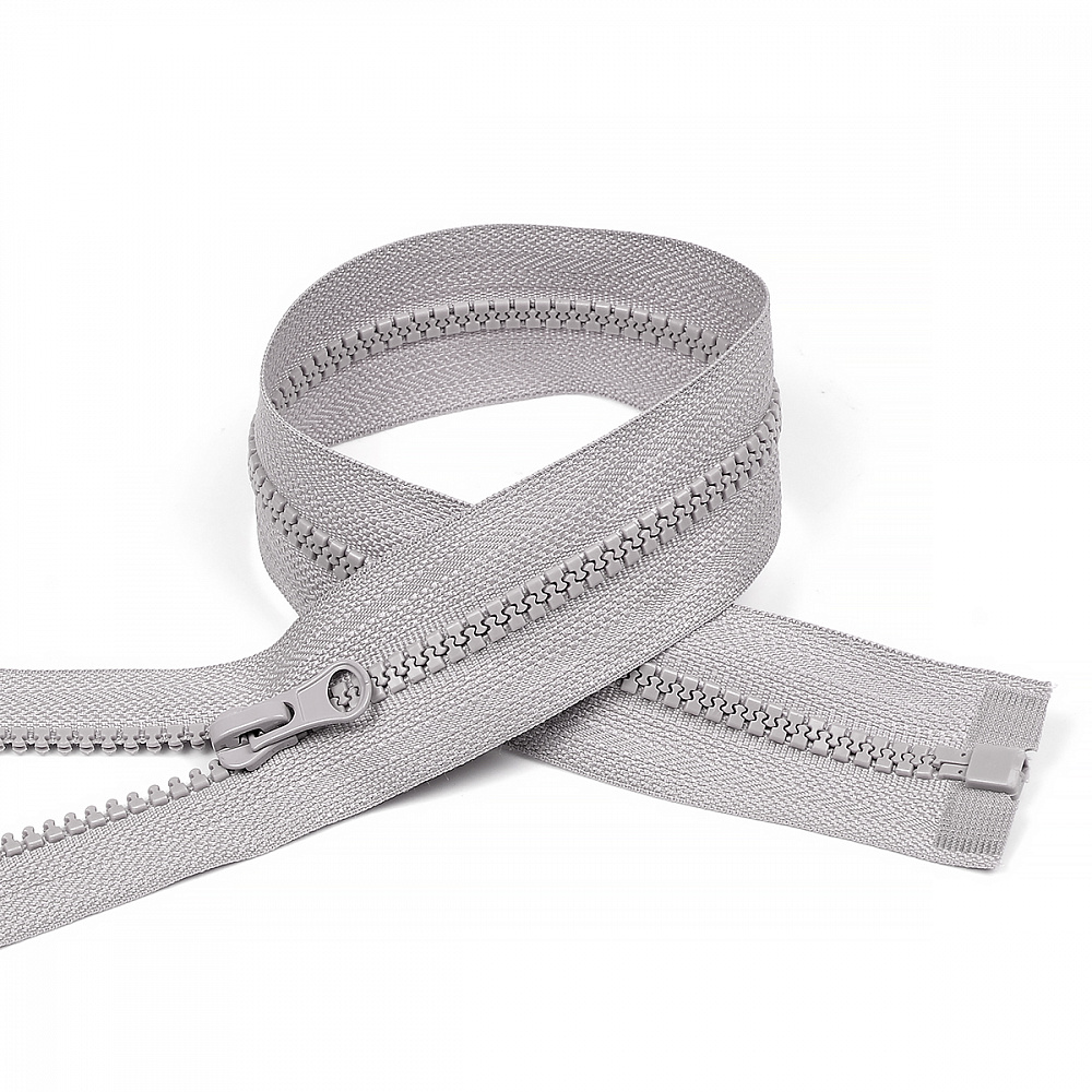 Тракторная молния состоит из пластиковых зубьев, закрепленных на тесьме отдельно. Зубья чаще всего имеют закругленную форму. Молния трактор Mzip имеет прочную и широкую тесьму (около 3,3 см). Твердые зубья на молнии изготовлены из качественного пластика первого сорта POM (качества Delrin). Это термопластический материал, разработанный на основе полиоксиметилена (он так же известен как ацеталь, полиацеталь – наиболее жесткий из всех полимеров). Данный материал обеспечивает звеньям молнии долговечность, плавное скольжение. Обладает высокой химической и термической стойкостью, устойчив к механическим повреждениям. Низ молнии около разъема имеет усиленную таффетную заделку. Данная молния надежна и износоустойчива, легко переносит перепады температур - не теряет своих свойств.