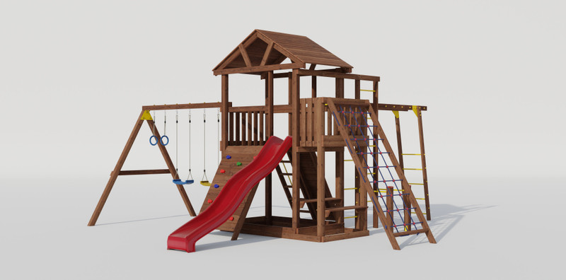 Каркас игровой площадки изготовлен из клееного бруса сечением 90*90 мм, и массива сосны 40*90, пол,