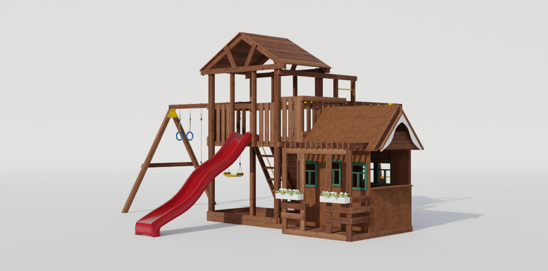 Каркас игровой площадки изготовлен из клееного бруса сечением 90*90 мм, и массива сосны 40*90, пол,