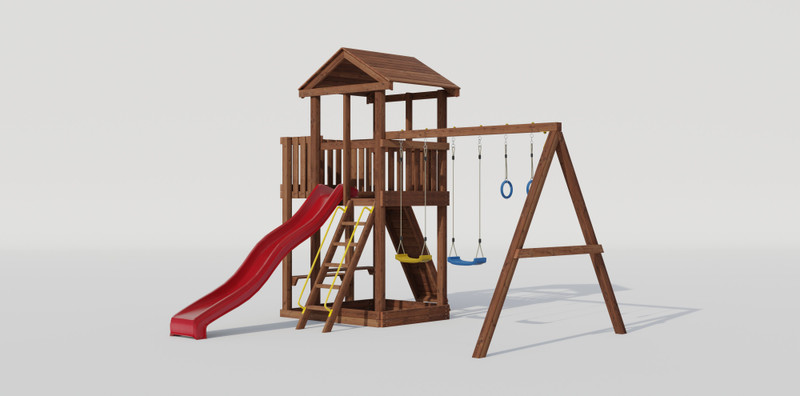 Каркас игровой площадки изготовлен из клееного бруса сечением 90*90 мм, и массива сосны 40*90, пол,