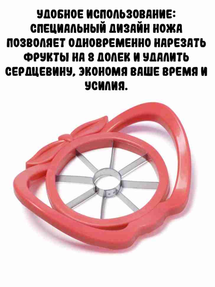 Нож для нарезания яблок и груш на равные дольки и одновременного удаления сердцевины одним движением.