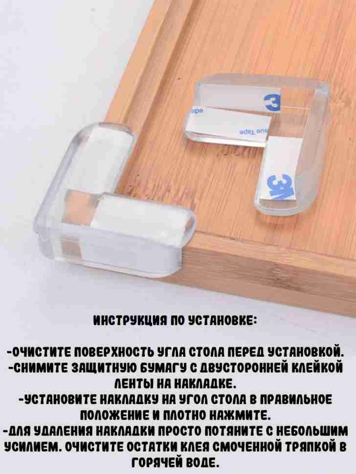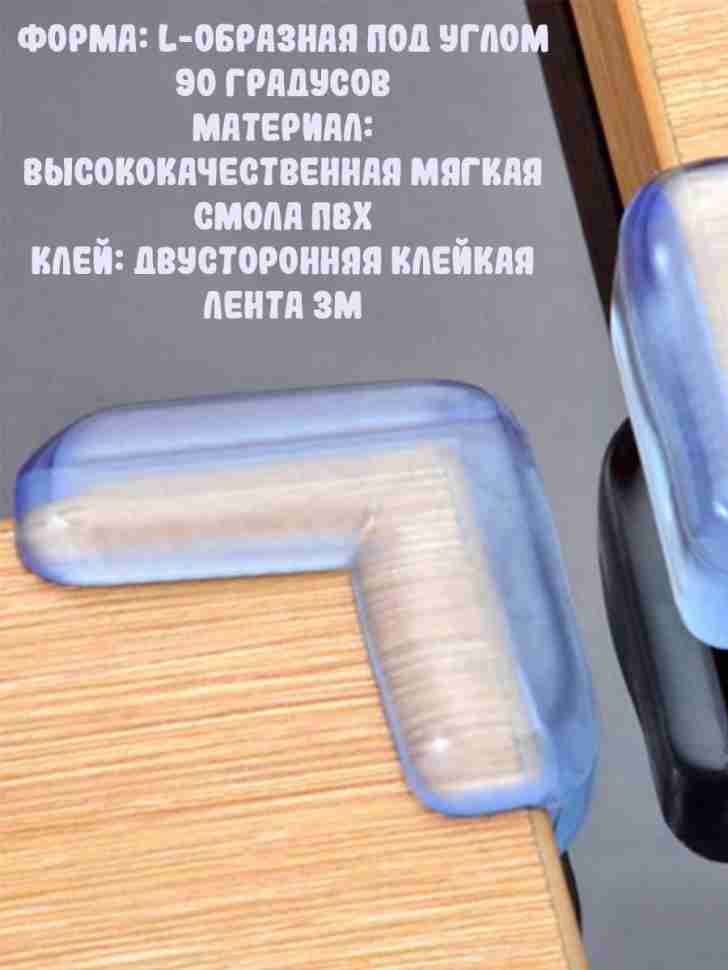 Противоударные накладки размером 40х40 мм, L-образной формы под углом 90 градусов. В комплекте 4 штуки. Материал: высококачественная мягкая смола ПВХ (с двухсторонней клейкой лентой 3M).