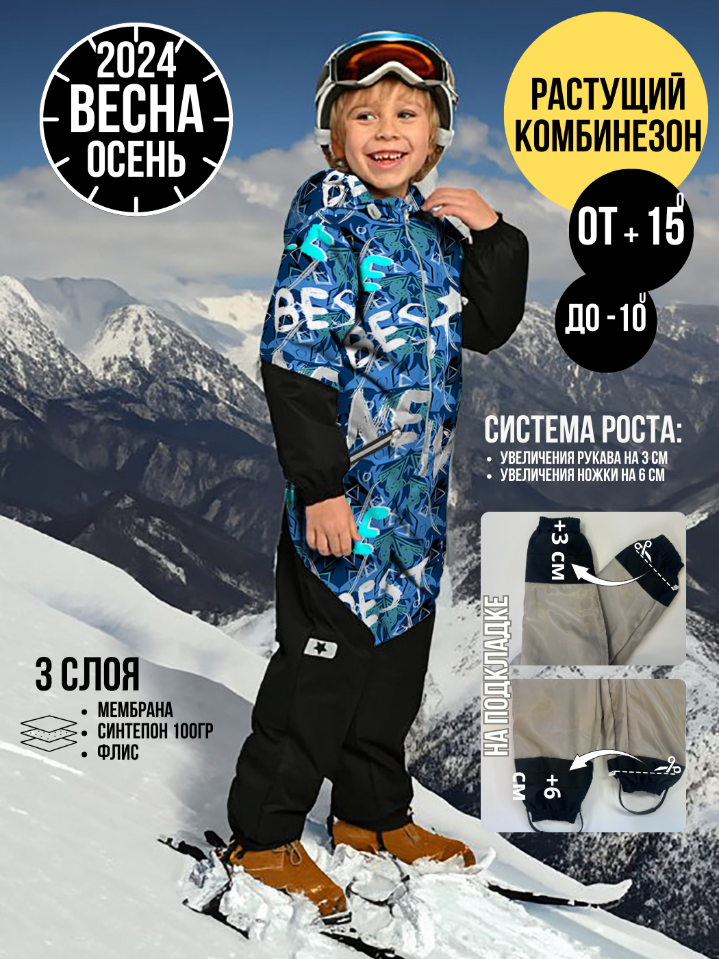 Состав: верх-Мембрана 100%пэ, утеплитель холлофайбер 300 гр., Подкладка: Флис (100% ПЭ) + смесовая ткань