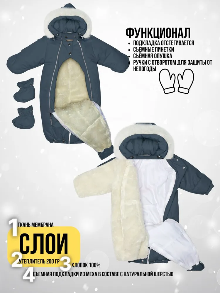 Состав: верх-100%пэ, утеплитель синтепон 200гр, подстежка съемная с содержанием шерсти 10%