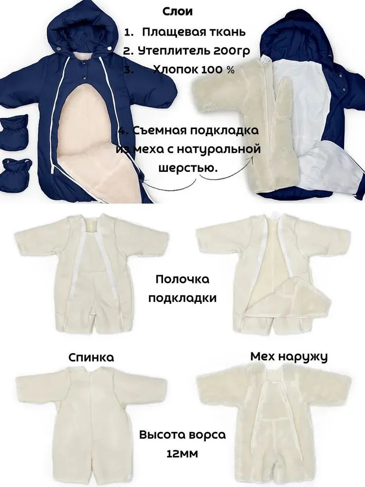 Состав: верх-100%пэ. утеплитель -синтепон 200гр, подстежка съёмная с содержанием шерсти 10%