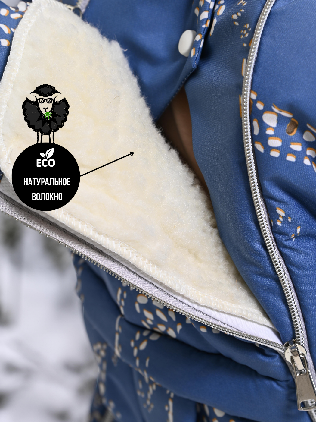 Состав: 100%ПЭ, утеплитель синтепон 200 гр., подстежка съемная с содержанием шерсти 10%