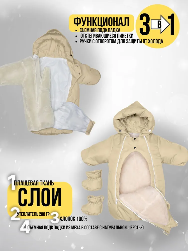 Чтобы купить Комбинезон-трансформер, Зима, Светло-бежевый УЦЕНКА , арт.147У (74 см) оптом по цене по запросу, свяжитесь с поставщиком. Компания поставщик — МаЛеК БэБи (ООО «МаЛеК-БэБи») из города Москва. Доставка возможна самовывоз, транспортной компанией, автомобилем, авиатранспортом, железной дорогой, курьером. Способы оплаты: наличными, безналичная оплата, кредитные карты, электронные деньги.