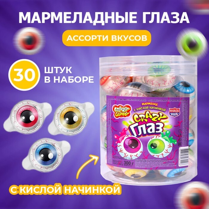 Чтобы купить Мармелад - Crazy глаз оптом по цене 49 руб., свяжитесь с поставщиком. Компания поставщик — Мандарин подарки (ИП «Шаталов Алексей Сергеевич») из города Омск (Омская область). Доставка возможна самовывоз, транспортной компанией, автомобилем. Способы оплаты: наличными, безналичная оплата.
