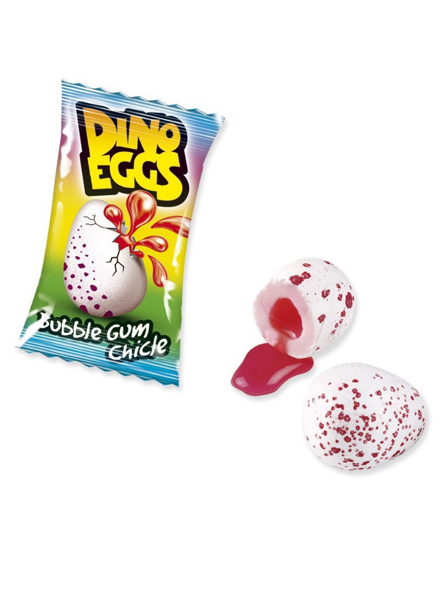 Жевательная резинка с сочной клубничной начинкой в форме яйца динозавра. Состав ингредиенты: сахар, глюкозный сироп, жевательная масса (соялекитин), аромат, кислотность: молочная кислота, яблочная кислота, увлажнители: глицерин, кислотность: лактат натрия, покрытие: воск пчелиный, карнаубский воск, растительное Масло (пальмовое, кокосовое), краситель: натуральный кармин, экстракт перца.