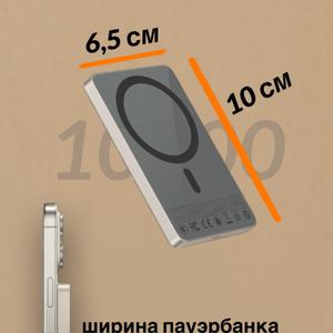 (MagSafe): до 15 Вт для совместимых устройств (например iPhone 12/13/14/15/16 и др.). • Быстрая проводная зарядка: поддержка PD 20 Вт через USB-С (выход и вход). • Порты: USB-C (вход/выход) — удобно для зарядки самого повербанка и других устройств. • Магнитная фиксация: улучшенное магнитное сцепление удерживает телефон на задней стороне для стабильной беспроводной зарядки. Компактный дизайн: небольшой и портативный, подходит для ежедневного использования и путешествий.