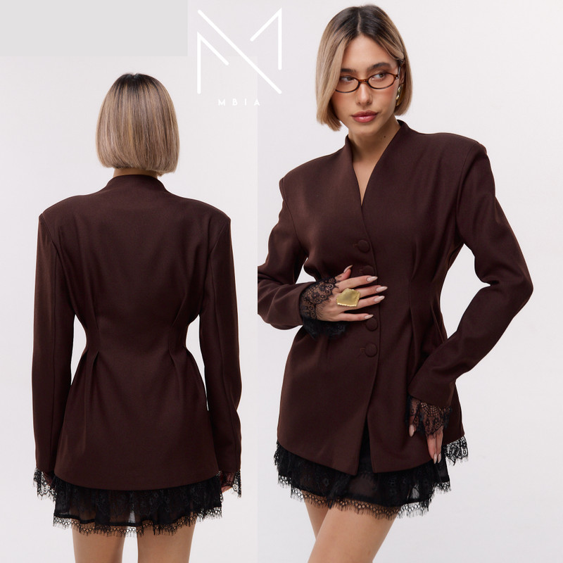Контрактное производство MBIA Fabric (Бишкек, Кыргызстан) предлагает оптовый пошив женского пиджака Ленко. Это приталенная модель с элегантным кружевом — хит для коллекций в стиле романтичный минимализм и деловая женственность.