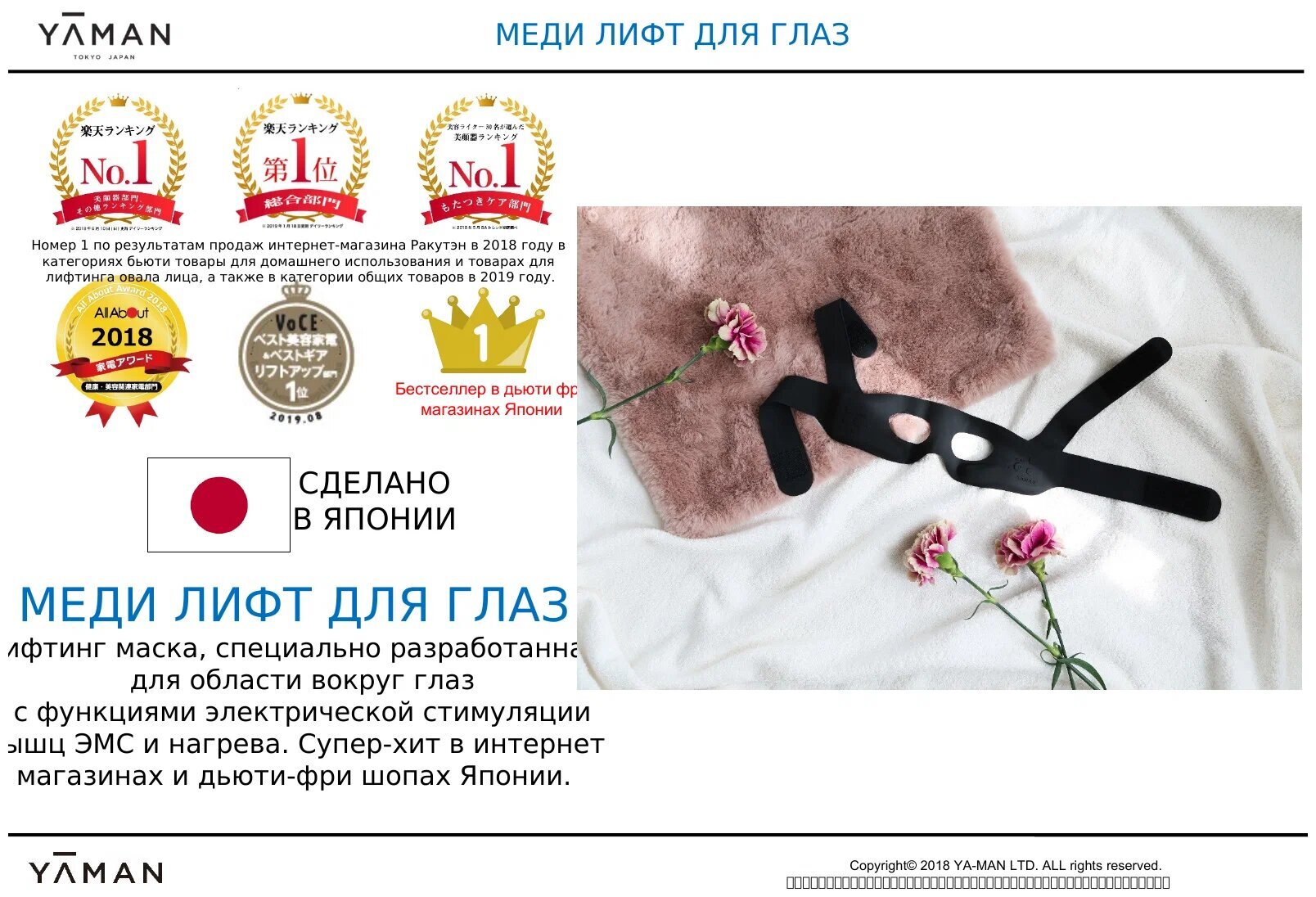 Чтобы купить YA-MAN Medi Lift Eye. Электрический микротоковый массажер для лица. оптом по цене по запросу, свяжитесь с поставщиком. Компания поставщик — Медис (ООО «Медис») из города Москва. Доставка возможна самовывоз, транспортной компанией, автомобилем, авиатранспортом, железной дорогой, курьером. Способы оплаты: наличными, безналичная оплата, кредитные карты.