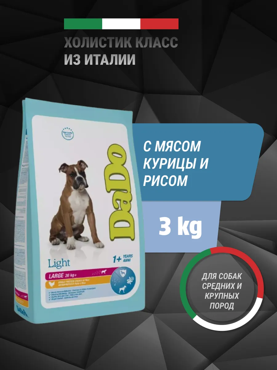 Полноценный сухой корм класса холистик с мясом курицы и рисом. Предназначен для повседневного кормления взрослых собак средних и крупных пород склонных к избыточному весу и ведущих малоактивный образ жизни.