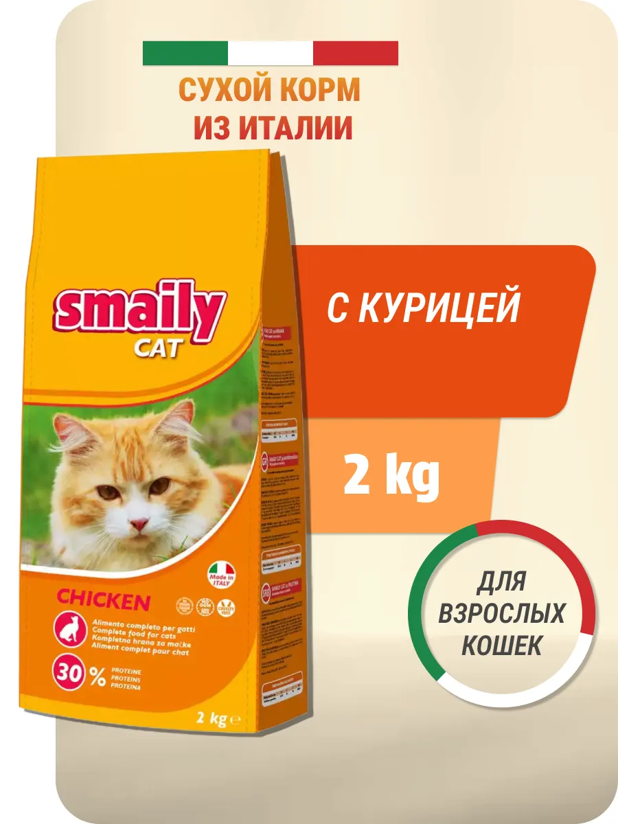 Сухой корм с курицей Smily для кошек – это сбалансированный и вкусный рацион для кошки. Он содержит все необходимые питательные вещества для поддержания здоровья и активности кошки. В составе корма – высококачественное мясо птицы, злаки и полезные добавки, которые обеспечивают кошку энергией и необходимыми витаминами. Корм легко усваивается и обеспечивает правильную работу желудочно-кишечного тракта.