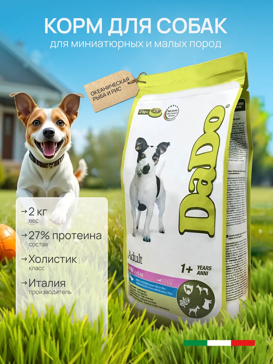 Корм сухой с рыбой и рисом для мелких собак от бренда Dado представляет собой корм класса холистик. Этот корм сочетает в себе изысканный вкус океанической рыбы и риса, обеспечивая вашего питомца не только вкусным, но и питательным рационом. Основу его состава составляют высококачественные ингредиенты Эти компоненты способствуют поддержанию здоровья суставов, улучшению пищеварения и общему благополучию вашего любимца. Корм сухой с ягненком – идеальный выбор для тех, кто ценит качество питания своего питомца и стремится обеспечить ему полноценное и сбалансированное питание. Корм гипоаллергенный и предназначен для повседневного кормления взрослых собак малых и миниатюрных пород. Корм для собак мелких пород сухой и у собаки всегда должен быть свободный доступ к свежей питьевой воде.