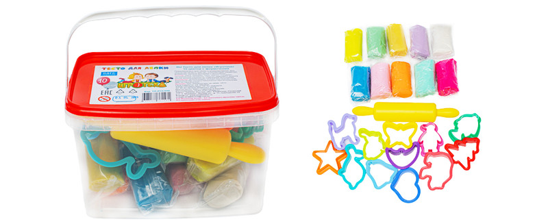 10 цветов, 600гр скалка+12формочек, контейнер