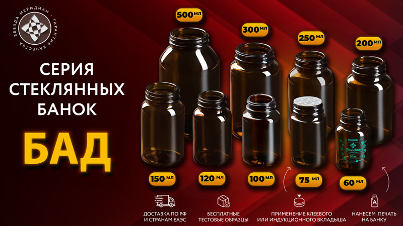 Рады представить новую серию стеклянных банок «БАД». Эти банки идеально подходят для использования в фармацевтической промышленности, особенно для хранения таблеток и капсул. В серии представлены банки объемом: 60 мл, 75 мл, 100 мл, 120 мл, 150 мл, 200 мл, 250 мл, 300 мл, 500 мл, что позволяет подобрать оптимальный размер для любого продукта или составить линейку из разных объемов.