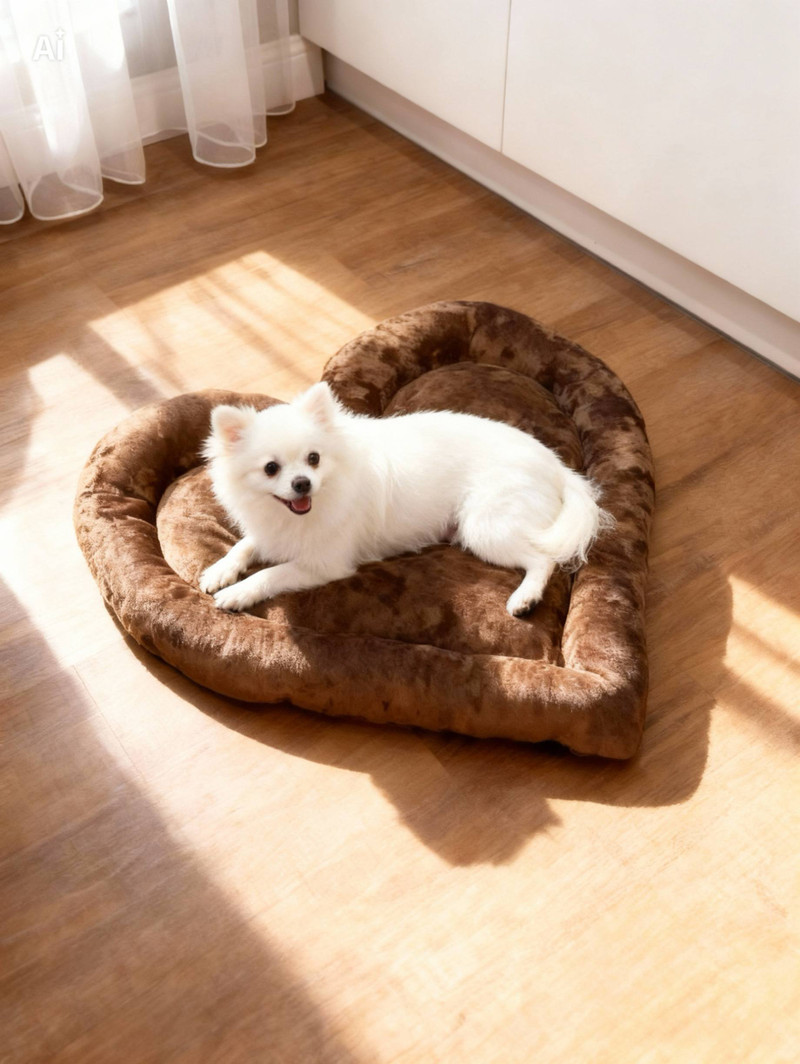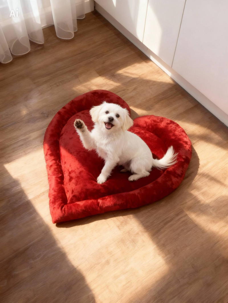 Лежанка имеет оригинальную форму сердца, что привлекает внимание своей уникальностью. Имеет размер 65х65 см. Изготовлена из материала плотный велюр, имеет антивандальную характеристику. Наполнитель гипоаллергенный холлофайбер, плотная набивка, хорошо держит форму. Разрешена машинная стирка на деликатном режиме. Разрешено пылесосить.