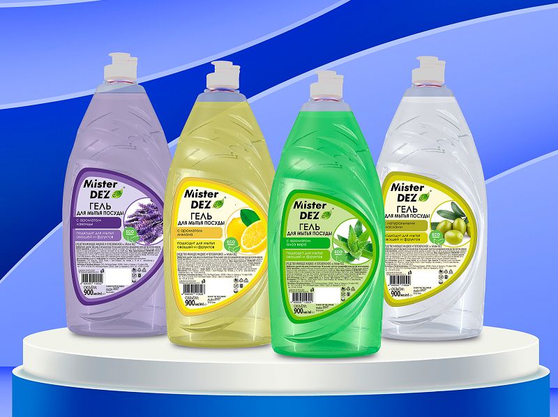 Завод-изготовитель «ЕвроТек» обновил линейку гелей для мытья посуды Mister DEZ объёмом в 900 мл. Дизайн средств стал более современным и функциональным: потребителю легче считывать информацию о продукте.