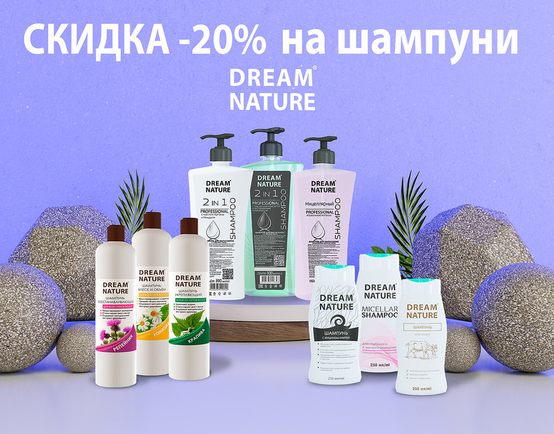 Шампуни DREAM NATURE можно купить оптом по выгодным ценам напрямую от производителя. Специальная скидка в 20% действует с 30.09.2025 по 15.10.2025.