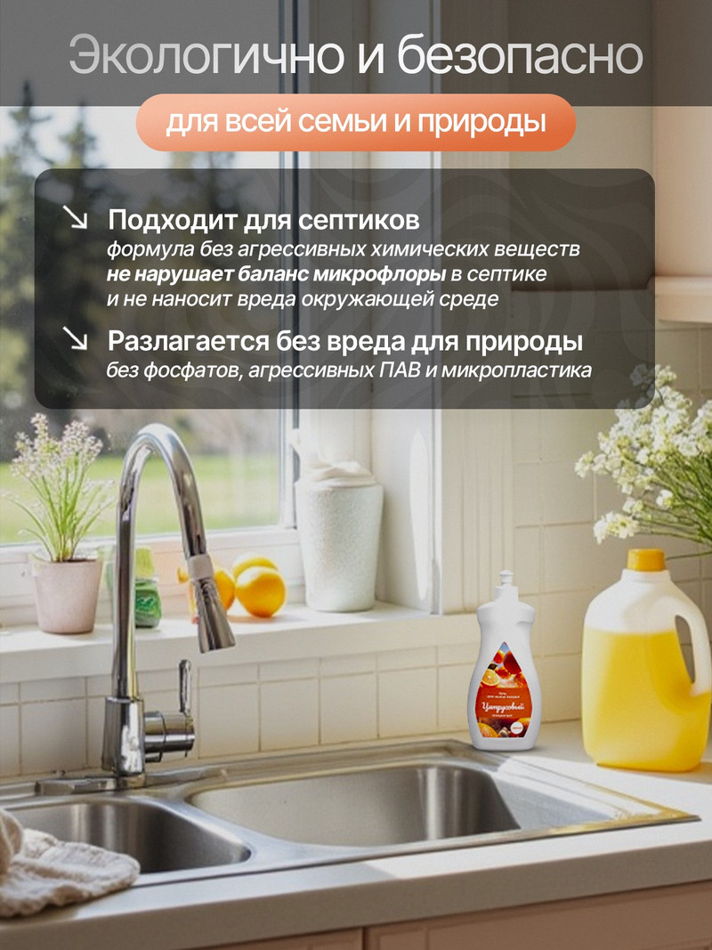 * Биоразлагаемая формула без хлора и фосфатов. Все используемые вещества распадаются естественным путем 3−10 дней после утилизации. Безопасен для антисептиков.