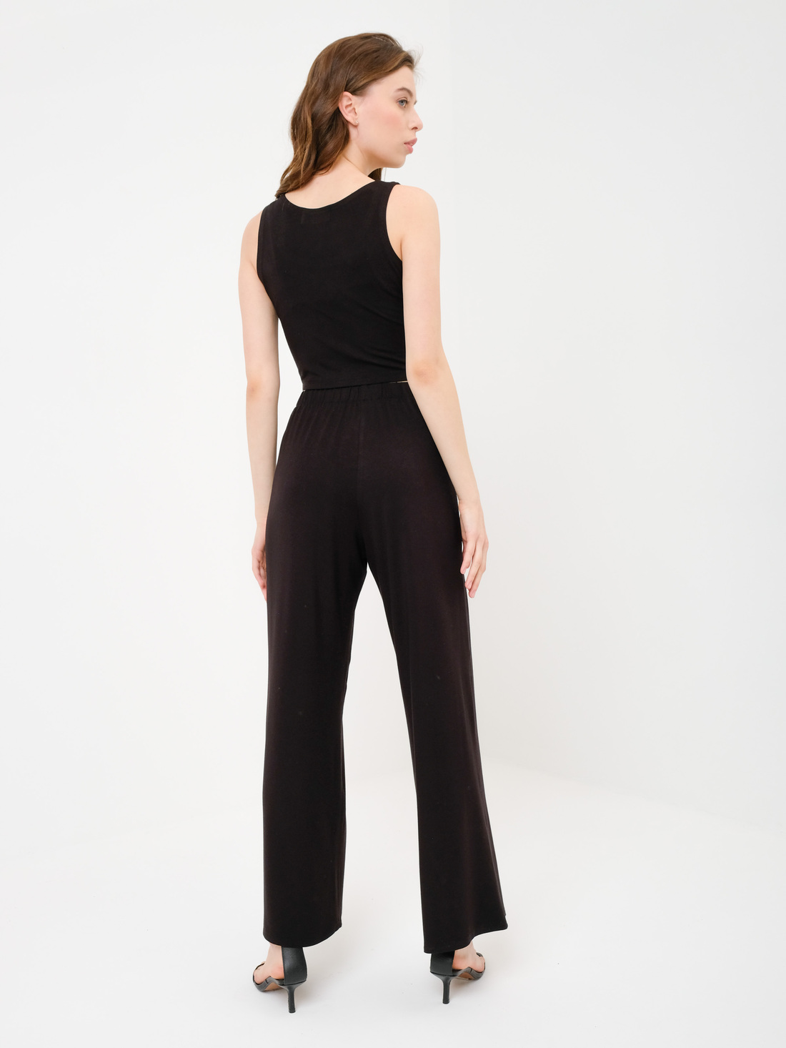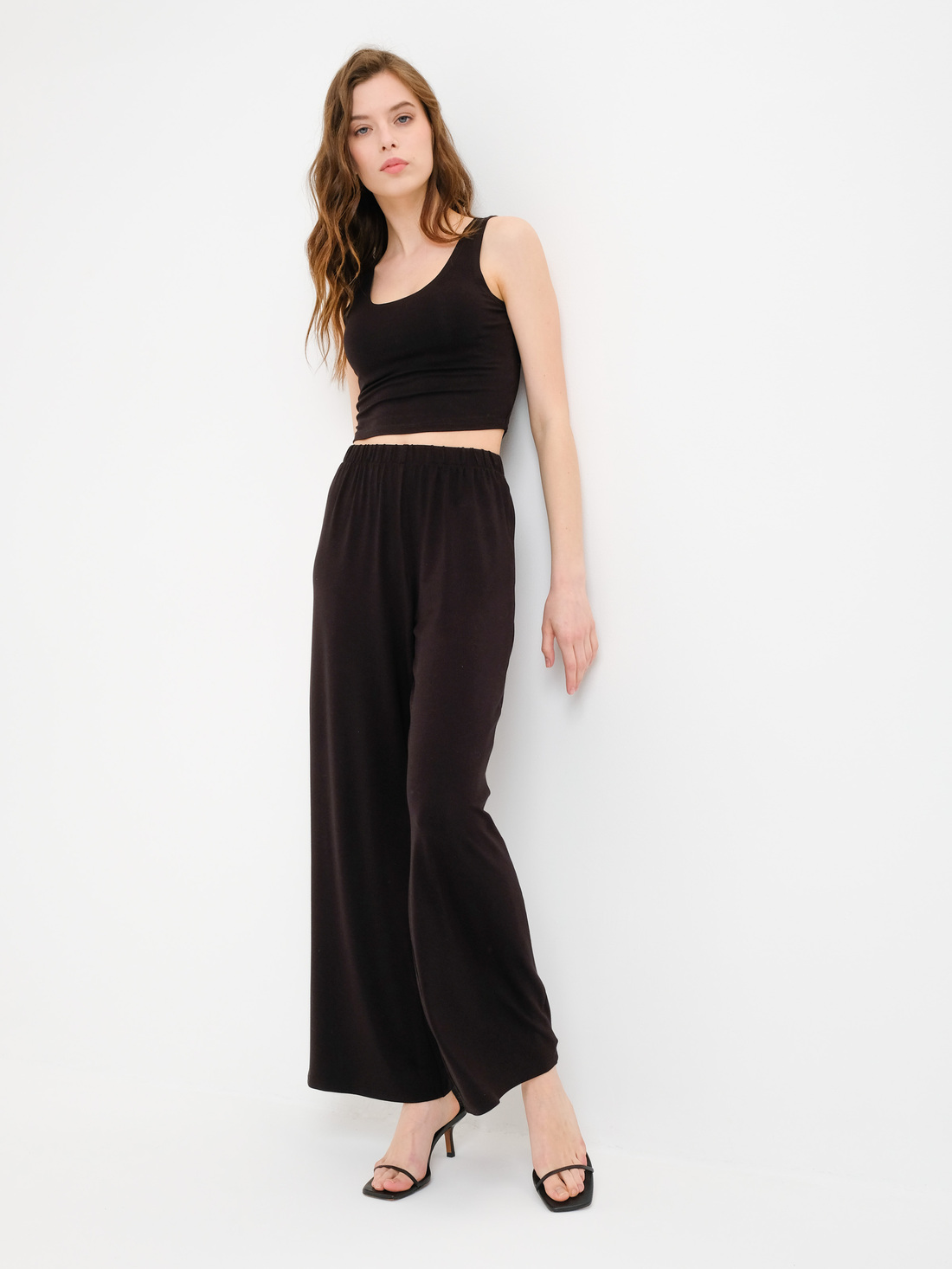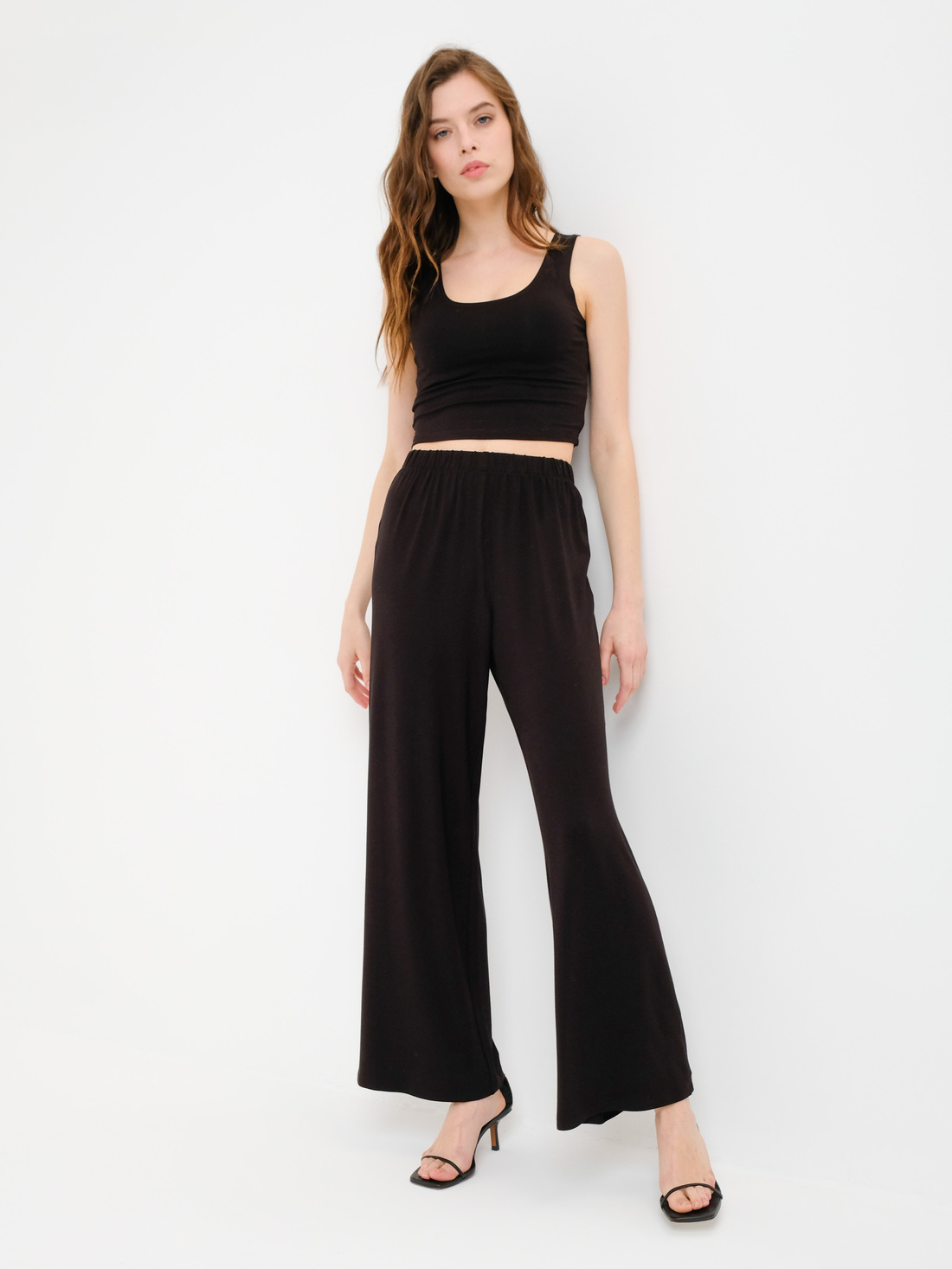 Широкие свободные брюки из тонкого дышащего хлопкового трикотажа на резинке. Без карманов. Отлично подходят для повседневного использования дома и на улице. Ткань хлопковая с 5% содержанием эластана. Объем резинки на талии для разных размеров: XS - 60 см S - 65 см M - 70 см L - 75 см XL - 80 см.