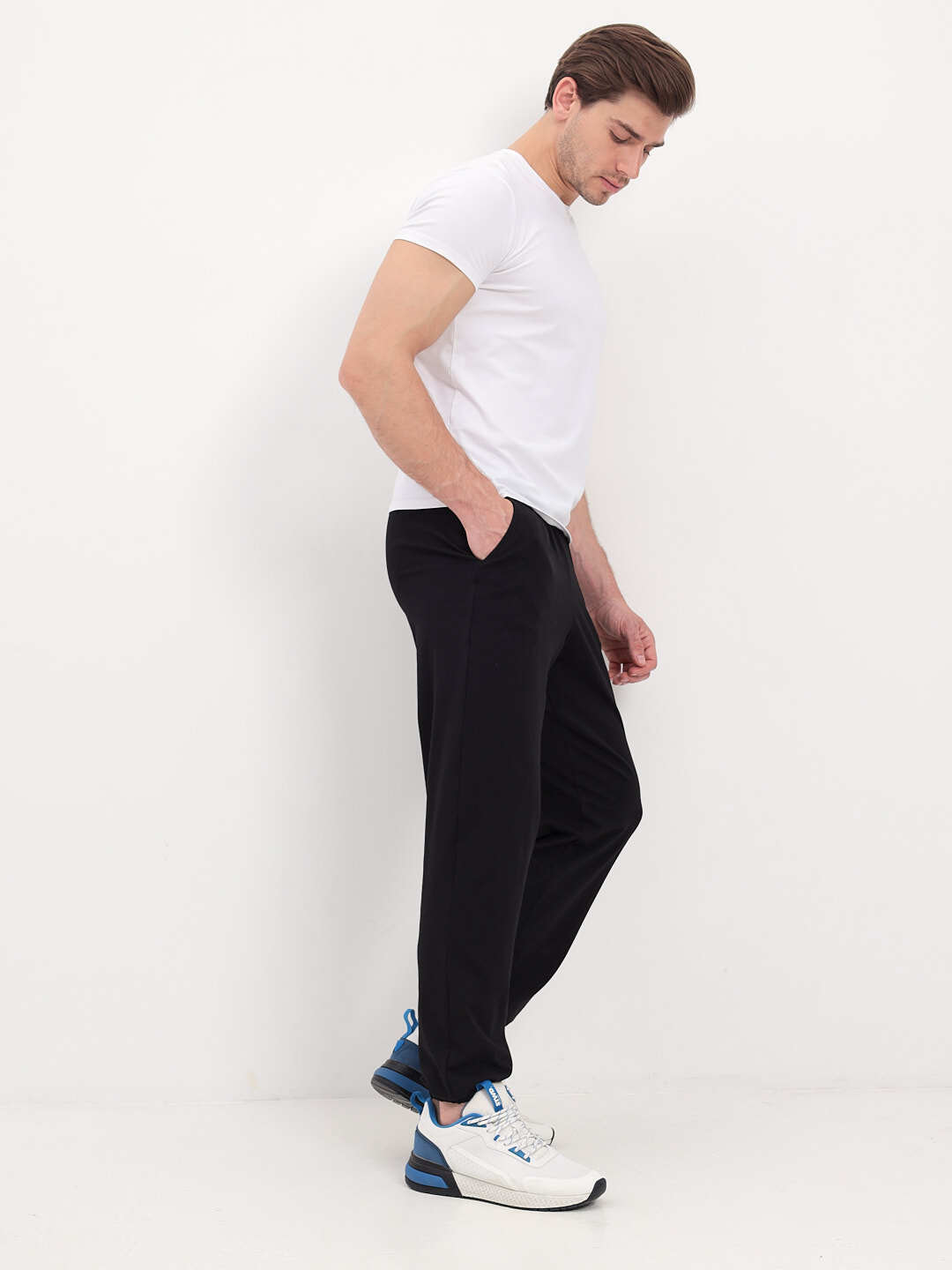 Мужские брюки из легкого трикотажа высокого качества. В таких брюках удобно заниматься спортом, использовать в качестве повседневной одежды, для походов на пляж, в дорогу, дома, в машине. Брюки универсальны и практичны. Широкая и эластичная резинка будет комфортно сидеть на талии, не стягивая ее. Внутренние карманы удобны для различных мелочей и телефона.