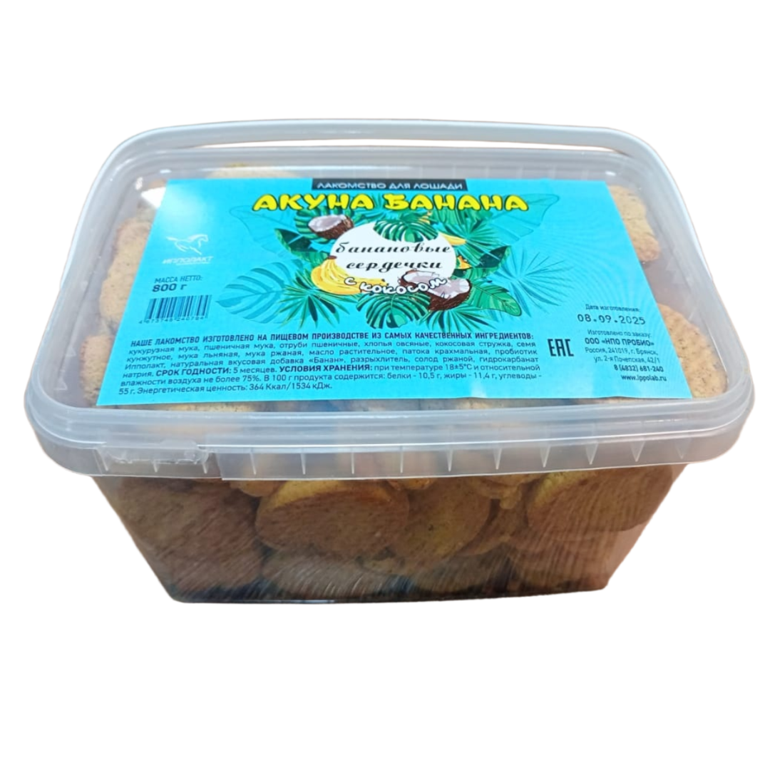Чтобы купить Банановые сердечки с кокосом 800 грамм оптом по цене по запросу, свяжитесь с поставщиком. Компания поставщик — Московский Конный Магазин Foliant (ИП «РАЧИНСКАЯ ЕВГЕНИЯ ВАЛЕРЬЕВНА») из города Молоково (Московская область). Минимальная сумма оптового заказа: 30000 руб. Доставка возможна самовывоз, транспортной компанией, автомобилем, курьером. Способы оплаты: наличными, безналичная оплата, кредитные карты.