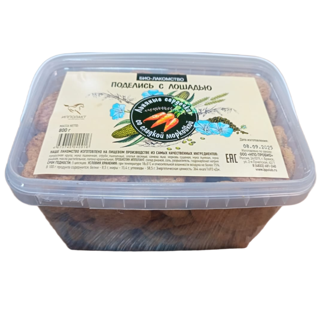 Био-печенье "Поделись с лошадью" имеет превосходный вкус, текстуру и кучу полезностей в составе. Печенье производится конечно же без химии: консервантов, красителей и ароматизаторов. Изготовлено на пищевом производстве из самых качественных ингредиентов. Сертификат ЕАС.