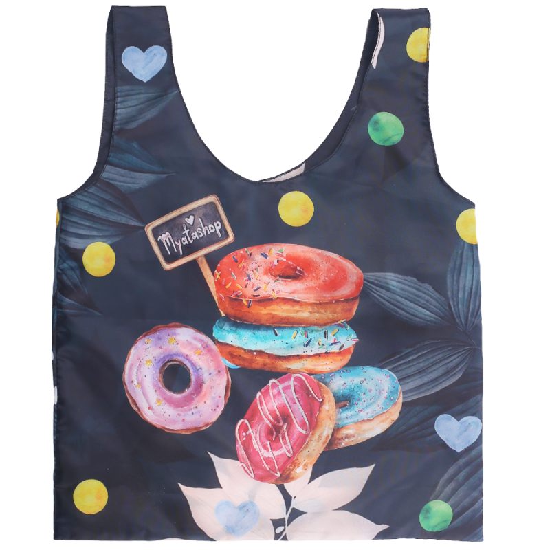 Авоська “Пончики на черном фоне” - это стильный и современный аксессуар для тех, кто не только любит практичные вещи, но и заботится об экологии. Легкая и компактная авоська легко складывается (в комплекте идет сумочка-мешок). Она подойдет для прогулки и для путешествия. Милый рисунок в виде аппетитных пончиков поднимает настроение. Красивая многоразовая авоська позволит сохранить природу, т.к. за год человек использует от 100 до 600 полиэтиленовых пакетов, для переработки которых природе потребуется 200-500 лет. Возьмите её с собой в магазин вместо пакетов! Эффектная, удобная эко-сумка выдерживает большой вес и не занимает много места в кармане или сумочке.