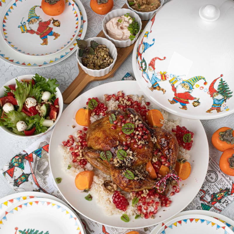 Коллекция великолепной посуды “Гномы” от “Myatashop” станет прекрасным дополнением сервировки праздничного стола. Забавные гномы подарят Вам превосходной настроение! Большое сервировочное блюдо с крышкой изготовлено из тонкого белоснежного фарфора и украшено изображением чудесных гномиков. Подойдет для подачи горячих блюд, разнообразных закусок, десертов и сервировки стола. Создайте в своем доме сказочную атмосферу новогоднего праздника вместе с нашим магазином!