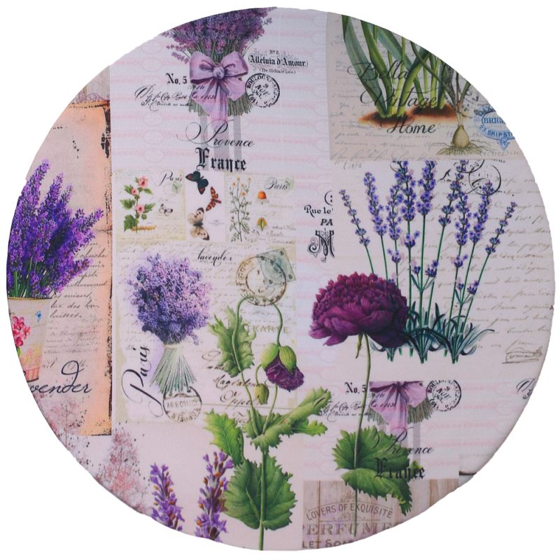 Чехол для сервировочной доски “Лавандовое настроение” выполнен из прочного современного материала. Он станет эффектным дополнением интерьера Вашего дома. Ткань украшена изображениями цветов и фруктов, а также разнообразными орнаментальными мотивами. Такой чехол для подставок будет радовать Вас, создавая прекрасное настроение. Чехол имеет резинку, одевается на основу подставки под тарелки и выполняет декоративную функцию. Его можно снимать, стирать, менять под настроение и стилистику.