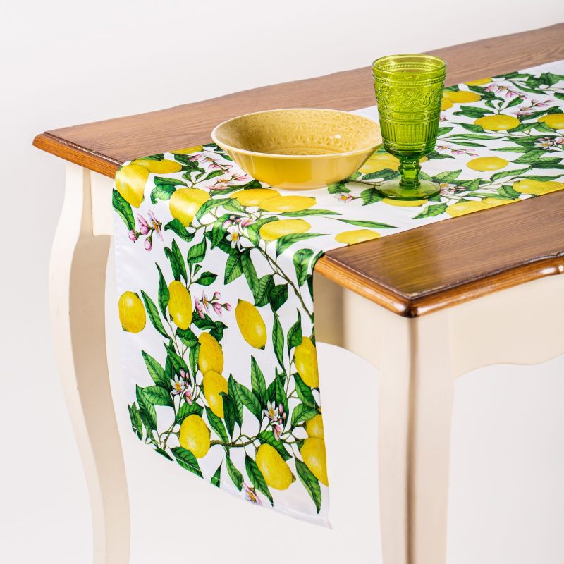 Дорожка на стол “Лимоны” станет эффектным дополнением интерьера Вашего дома. Выполненная из современного прочного материала, украшенная изображением ярких зеленых веточек со спелыми лимонами, она будет радовать Вас, создавая прекрасное настроение и наполняя Ваш дом ощущением весны. Дорожка может использоваться как самостоятельный элемент интерьера, так и в качестве дополнения коллекции “Лимоны”. Оригинальный дизайн и стильное цветовое решение позволяют расставить необходимые акценты. Создайте неповторимую атмосферу в Вашем доме с предметами интерьера из нашего магазина!